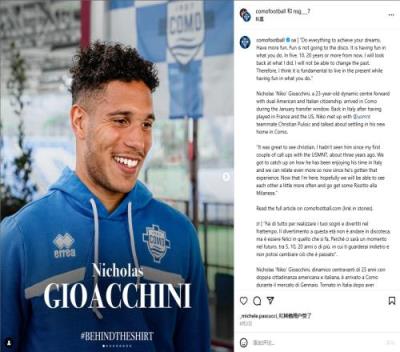 Tom Bogert指出,经过一段时间的谈判,辛辛那提FC就租借乔亚奇尼与科莫达成协议,这位24岁的美国前锋重返美职联。
