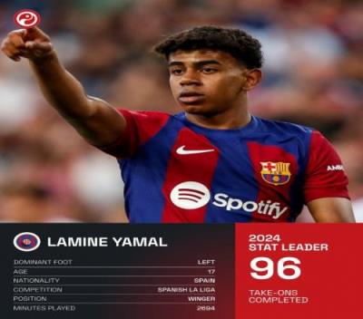 体育资讯12月28日报道宣称 数据机构squawka统计了近7年巴萨队内西甲年度过人榜,梅西独占前四。