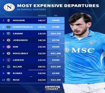 那不勒斯队史出售球员价格排名(括号内为下家):
