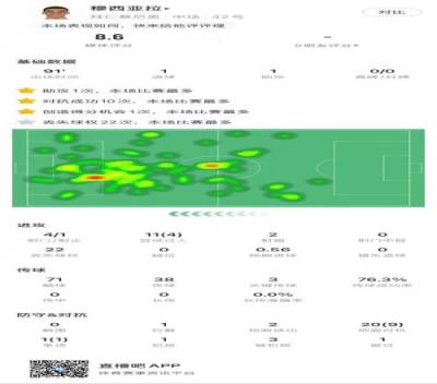 穆西亚拉全场数据:1球1助,3次关键传球,22次对抗赢得11次