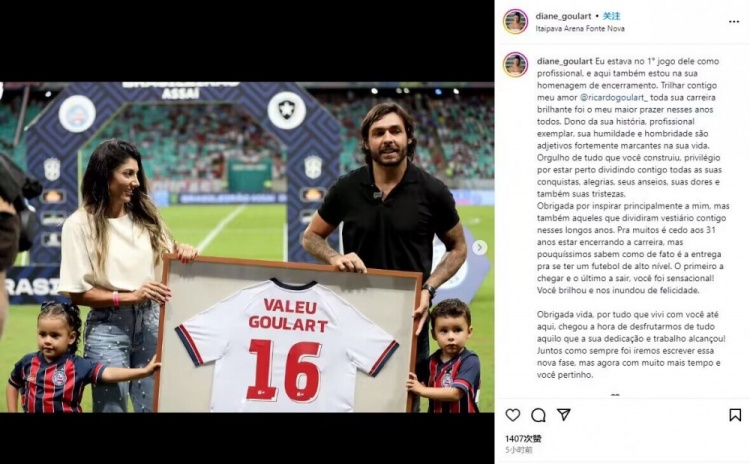 4月25日讯 在高拉特正式退役后,他的妻子在社媒发文,纪念了高拉特的职业生涯。
