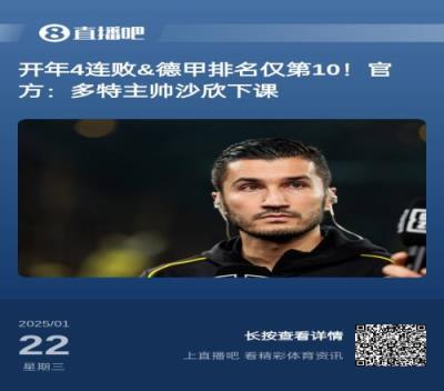 体育资讯01月22日报道宣称 官方消息,多特主帅沙欣下课。