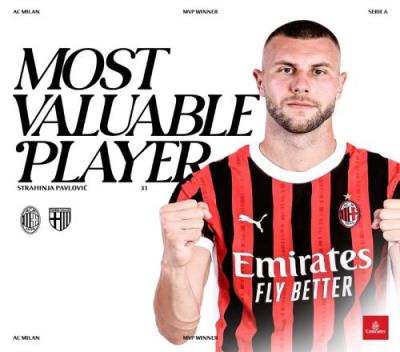 体育资讯1月27日报道宣称 意甲第22轮,米兰主场3-2逆转绝杀击败帕尔马。赛后,帕夫洛维奇当选米兰队内最佳球员。
