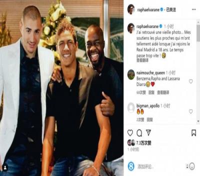 体育资讯12月18日报道宣称 瓦拉内更新社媒动态,晒出与本泽马、拉萨纳-迪亚拉的昔日合照。