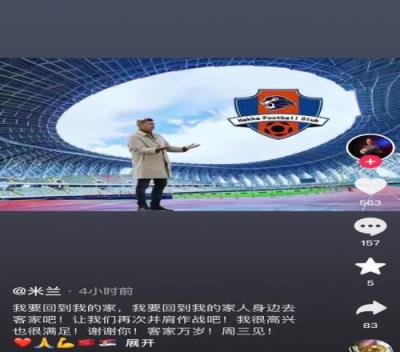 体育资讯1月6日报道宣称 今天,里斯蒂奇更新社媒,透露自己将继续执教梅州客家。