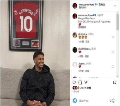 体育资讯1月1日报道宣称 曼联前锋拉什福德更新社媒动态,为大家送上新年祝福。