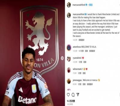 体育资讯2月3日报道宣称 维拉已经官宣租借引进曼联前锋拉什福德,后者也通过社媒发文。