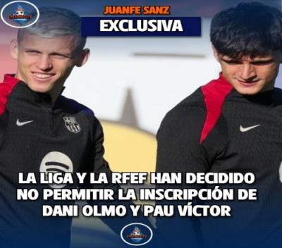 Juanfe Sanz指出,经过紧张的会议,西甲和西班牙足协决定不允许奥尔莫、保-维克托注册,这一决定将在接下来几小时内正式公布。