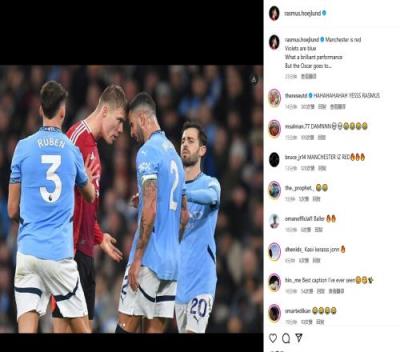 体育资讯12月16日报道宣称 曼联2-1逆转战胜曼城,霍伊伦赛后发文庆祝,还调侃了沃克。
