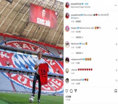 帕利尼亚也通过社媒晒出了自己手持16号球衣亮相安联球场的照片,并配文:“梦想成真!