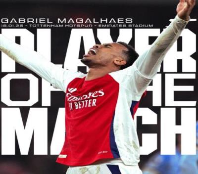 赛后,枪手后卫加布里埃尔当选队内最佳。本场比赛,加布里埃尔首发出战,通过角球机会造成索兰克乌龙球。