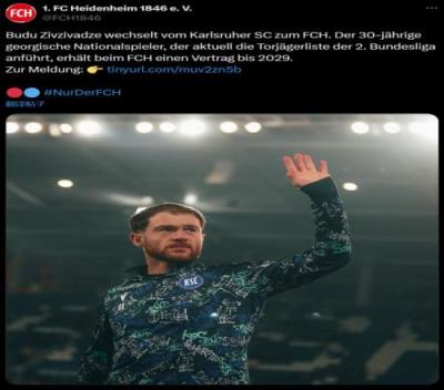 Florian Plettenberg表示,30岁的齐夫齐瓦泽拒绝了一份来自中超的高额报价,因为他想要在德甲踢球。同时他还特意决定在这个冬窗就转会,这样一来卡尔斯鲁厄仍然可以从他身上获得转会费,而不是到了夏天时免费失去他,海登海姆则为他支付了大约150-200万欧的转会费。