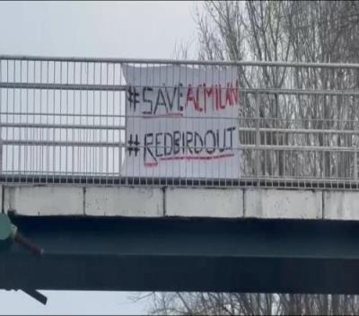体育资讯1月21日报道宣称 据意大利媒体milannews报道,今日下午,米兰球迷在距离俱乐部总部不远的地方,悬挂横幅抗议球队老板红鸟集团。
