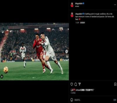 达洛特晒出自己突破阿诺德的照片,并写道:“在艰难的条件下拼到了一分。在标准和热情方面,这是我们的最低限度。红魔们,平安到家❤”