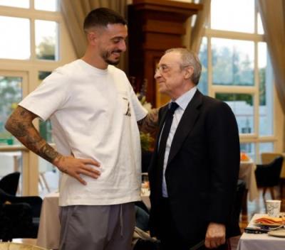 何塞卢在酒店探望皇马全队,与弗洛伦蒂诺、安帅及球员们亲切交谈