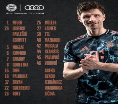 拜仁季前赛大名单:穆勒领衔新援帕利尼亚在列,凯恩缺席