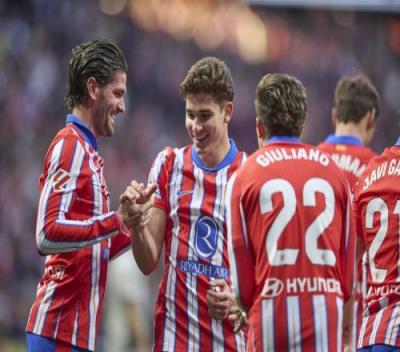 目前马竞在西甲多赛一场积45分,落后排在榜首的皇马1分。