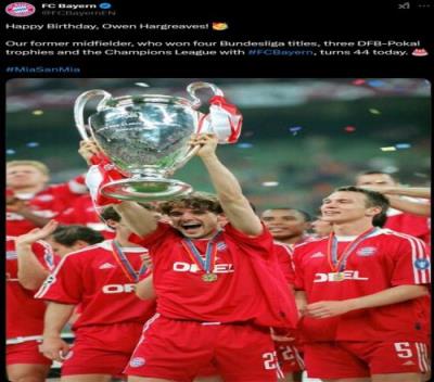 拜仁官方祝哈格里夫斯44岁生日快乐,曾随球队夺欧冠&4次德甲