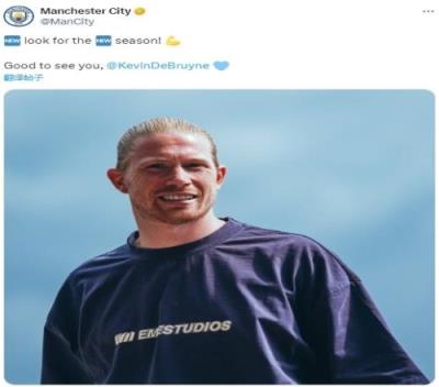 曼城官推也配文:“展望新赛季!很开心看到你,德布劳内!”