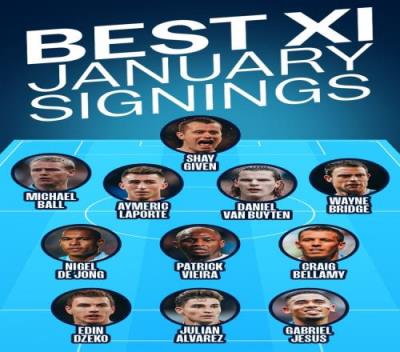 体育资讯1月1日报道宣称 目前五大联赛冬窗已经开启,曼城官网评选出了队内历史冬窗引援最佳11人,榜单所有球员目前均未在队中。