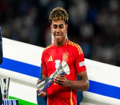 今年7月才年满17岁的亚马尔,在德国欧洲杯上开始了他的神奇表演,在这届赛事中,他创下了最年轻出场球员、最年轻进球球员的记录,并在决赛中送出一次助攻,帮助西班牙战胜英格兰最终捧杯。