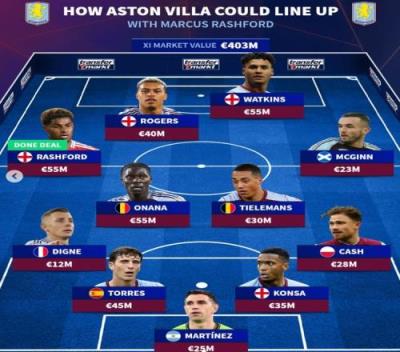 体育资讯2月3日报道宣称 体育资讯2月3日报道宣称 曼联边锋拉什福德已经官宣外租维拉,《转会市场》也预测了维拉的潜在主力阵容。