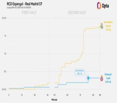 数据统计显示,皇马连续31个西甲客场都能取得进球的纪录也被终结。