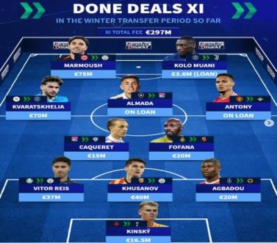 体育资讯1月28日报道宣称 冬窗已经临近尾声,《转会市场》也列出了今年冬窗至今的重磅转会阵。