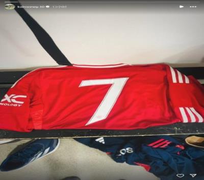 体育资讯12月15日报道宣称 鲁尼的大儿子凯-鲁尼今天在Instagram晒出一张曼联7号球衣的照片。