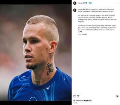 相关阅读:切尔西官方:英足总通知穆德里克药检阳性,球员称从未刻意服禁药