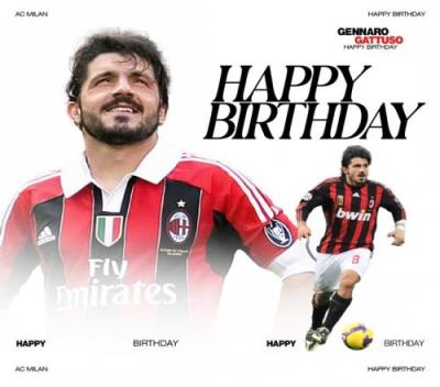 体育资讯1月9日报道宣称 今天是米兰名宿加图索47岁生日,米兰官方为他送上祝福。
