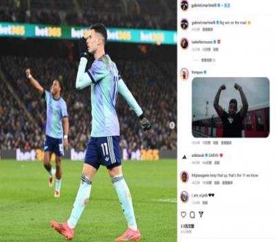 打破个人近1个月进球荒!马丁内利社媒晒照纪念:客场大胜