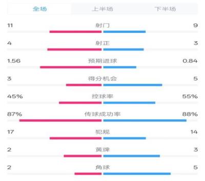 布莱顿11阿森纳数据:射门119,射正43,控球率45%55%