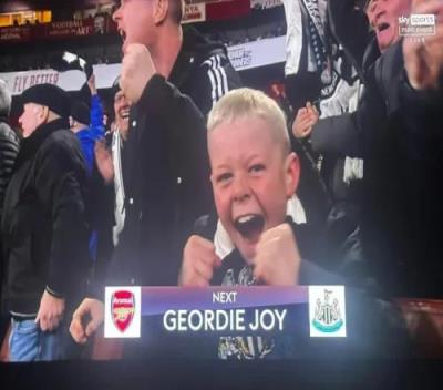 一名9岁的纽卡小球迷逃课看客战阿森纳的比赛,他的妈妈告诉老师孩子生病了。结果这名小球迷庆祝纽卡赢球时,被转播镜头逮个正着。
