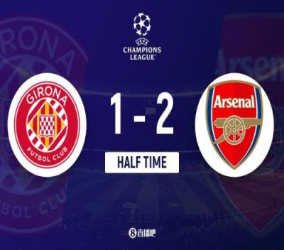 上半场比赛结束,阿森纳2-1赫罗纳。