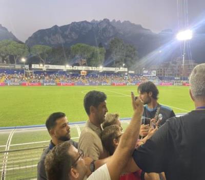 在意大利职业联赛杯(丙级杯)首轮比赛中,米兰未来队3-0完胜莱科。隆戈在社交媒体上晒出照片,确认米兰新帅丰塞卡来到球场,现场观战了这场比赛,并与球迷合影。