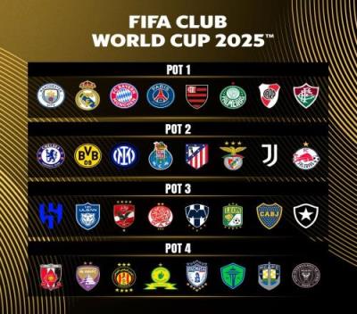 体育资讯12月4日报道宣称 国际足联已经确定世俱杯分档,曼城、皇马、拜仁和巴黎一档。新世俱杯的抽签将在北京时间12月6日凌晨2点在迈阿密进行。《马卡报》撰文解析世俱杯抽签的规则,其中第一档的欧洲和南美球队最早只能在半决赛相遇。