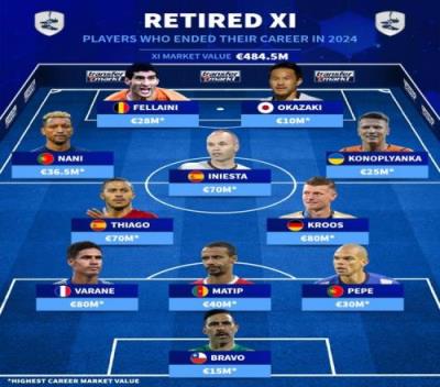 德转列2024年退役阵容(巅峰德转身价,总价4.845亿欧):