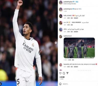 助攻双响!贝林厄姆社媒晒庆祝照纪念大胜:这就是欧冠