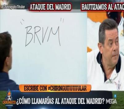 体育资讯8月20日报道宣 《阿斯报》主编、皇马拥趸龙塞罗今天作客西班牙六台节目El Chiringuito,他给皇马的锋线四人组合起了个名字叫BRVM。