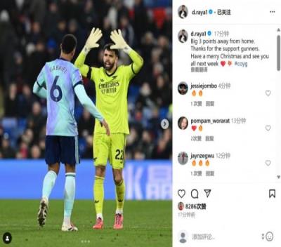 本场比赛阿森纳门将拉亚做出多次精彩扑救,他也在个人社媒晒出与加布里埃尔庆祝合影,配文写道:“重要的客场胜利,感谢枪迷们的支持,祝你们圣诞快乐,下周再见!”