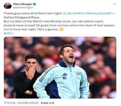 摩根社媒:阿森纳vs曼联的全场最佳是定位球教练乔弗,他是天才