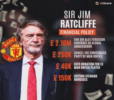 巨款拉特克利夫入主后,已经帮曼联节省了260万英镑开支