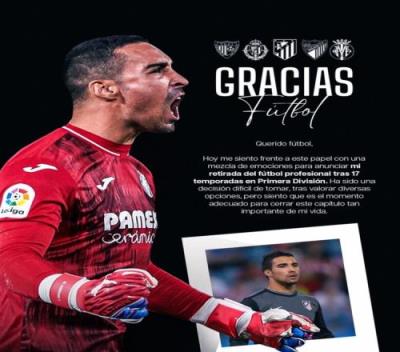 体育资讯7月28日报道宣称 《阿斯报》报道,前比利亚雷亚尔、马德里竞技门将塞尔吉奥-阿森霍在社交媒体上宣布退役。