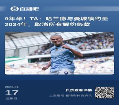 9年半!TA:哈兰德与曼城续约至2034年,取消所有解约条款