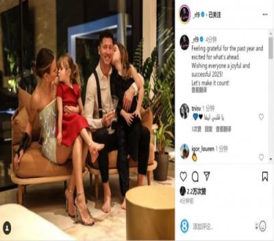 莱万社媒晒出与家人的合照,并写道:“对过去的一年心存感激,对未来充满期待。”