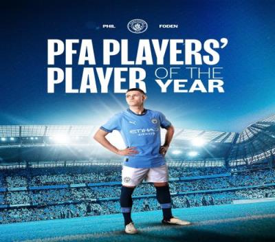 至此,近5届PFA年度最佳球员奖,曼城球员获得其中4届。