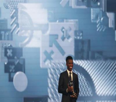 体育资讯12月18日报道宣称 2024FIFA年度颁奖典礼在今日凌晨落幕。维尼修斯获得了FIFA年度最佳球员的奖项,该奖项得票前三的球员依次是维尼修斯、罗德里和贝林厄姆。三名球员中,只有维尼修斯到场参加了典礼,接受了颁奖。