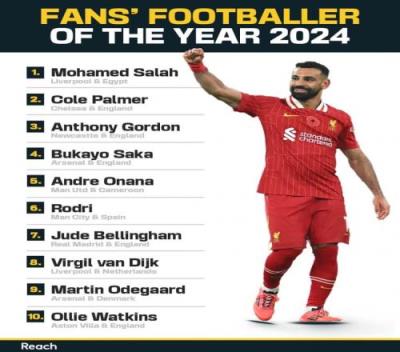 官方:萨拉赫当选镜报球迷票选2024年足球先生,帕尔默第二