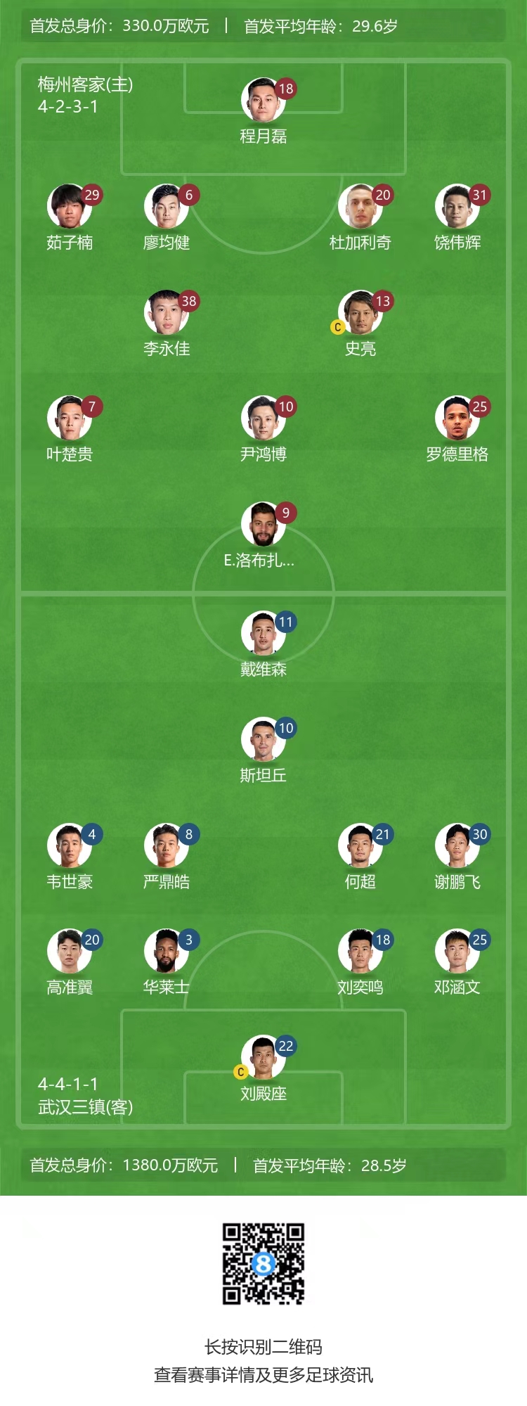 梅州vs三镇首发:3外援PK3外援,韦世豪、斯坦丘、尹鸿博登场